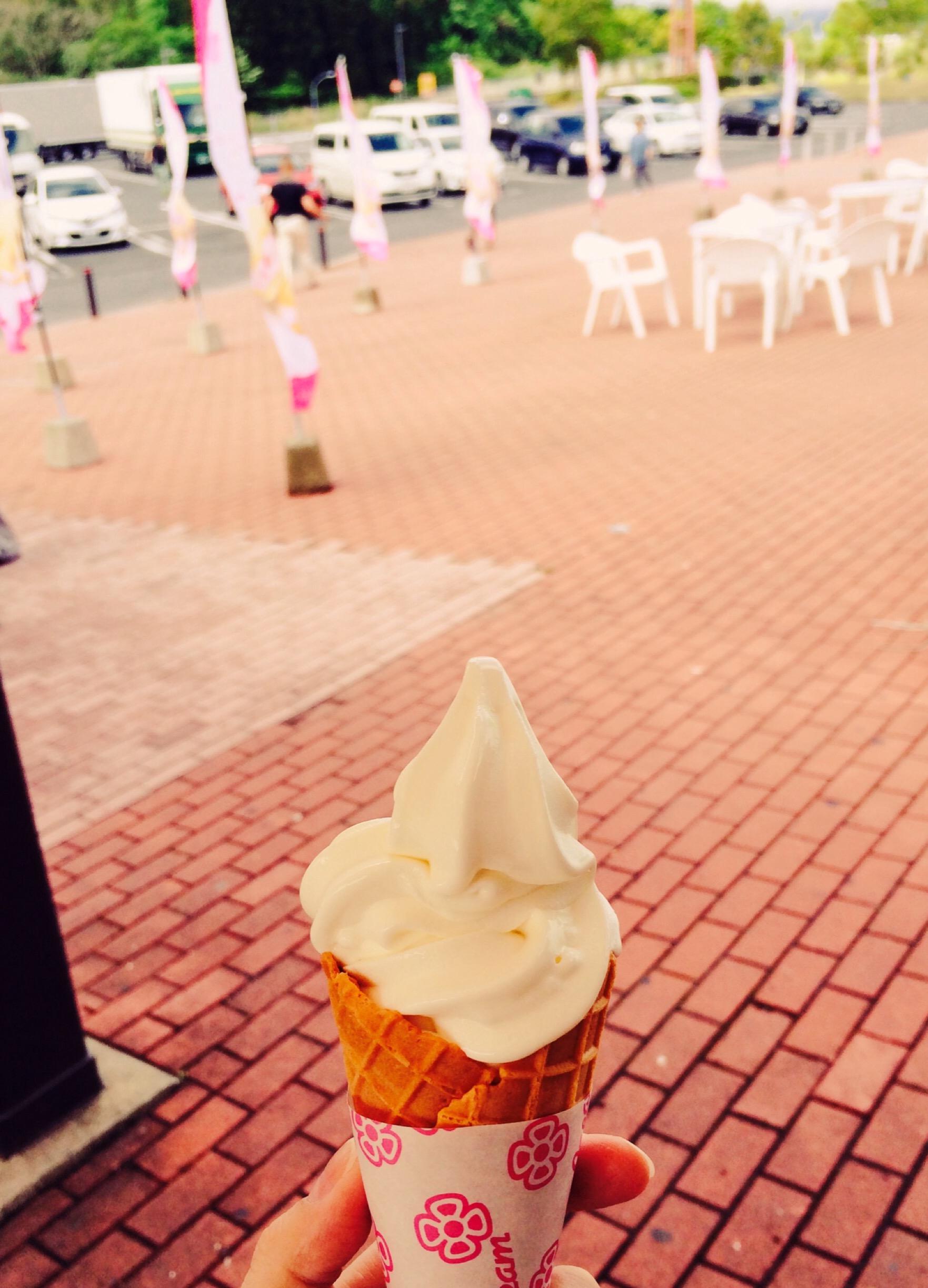 蒜山ソフトを食べ上機嫌![]()
