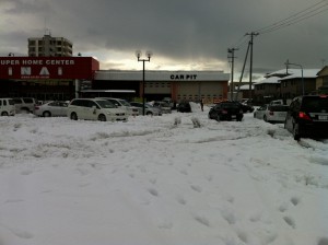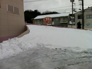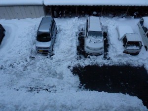駐車場は雪だらけ
